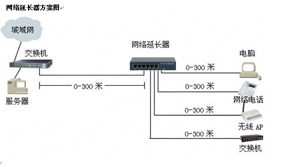 一直以來和以后的很長一段時(shí)間,互聯(lián)網(wǎng)信息的傳輸都會(huì)以以太網(wǎng)為重要通道,而以太網(wǎng)與終端設(shè)備的連接又是用一種以五類線為介質(zhì)的,五類線是一種廉價(jià)、成熟可靠的到處可買容易安裝應(yīng)用方便,在全雙工或半雙工工作時(shí),其速度最高可達(dá)到1000Mbps,但它有一個(gè)缺點(diǎn)就是傳輸距離不能超過100M米的重要限制。當(dāng)您的網(wǎng)絡(luò)傳輸距離超過100米時(shí)且受于環(huán)境的限制只能用五類線傳輸時(shí)可用廣州郵通推出專利產(chǎn)品網(wǎng)絡(luò)延伸器,為您提供全新的解決方案。您只要在網(wǎng)絡(luò)交換機(jī)或集線器或網(wǎng)卡的任一端之RJ45端口就近加上網(wǎng)絡(luò)延伸器,就可使以太網(wǎng)的五類線傳輸擴(kuò)展至600米。 |