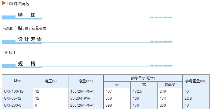 UXH系列電池