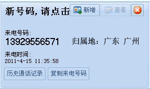 來電彈屏自動顯示對方號碼歸屬地數(shù)據(jù)信息;