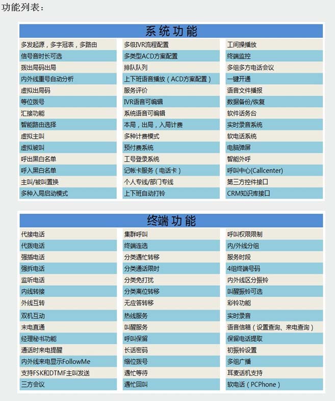 可按客戶需要配置多種管理軟件(參數(shù)設(shè)置、計(jì)費(fèi)系統(tǒng)、錄音系統(tǒng)、軟電話、callcenter等),其功能強(qiáng)大,界面友好??蓪?shí)現(xiàn)各類參數(shù)設(shè)置、狀態(tài)實(shí)時(shí)監(jiān)控以及各種功能的實(shí)現(xiàn),是保障和維護(hù)系統(tǒng)正常運(yùn)行的強(qiáng)力支持。