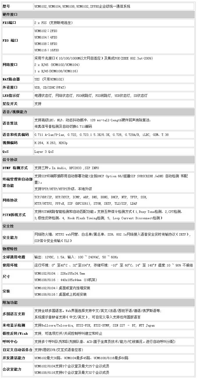2.支持PoE千兆網(wǎng)絡(luò)接口、USB、SD、多語(yǔ)言圖形顯示屏、以及帶QoS功能的NAT路由器(僅限UCM6102 )