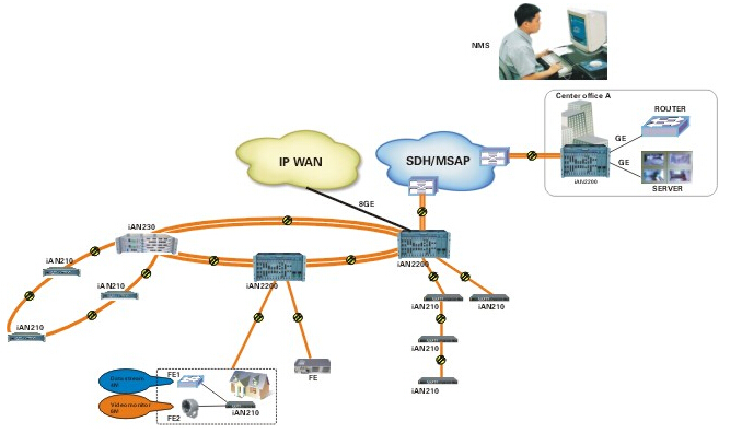 iAN230具有強大的時隙交叉和IP數(shù)據(jù)交換能力,可實現(xiàn)各種業(yè)務的靈活調度,完美實現(xiàn)傳統(tǒng)E1業(yè)務,光分支業(yè)務,EOS/EOP業(yè)務等多種業(yè)務的接入和匯聚;提供完備的業(yè)務保護能力,向客戶提供穩(wěn)定的傳輸線路;支持多種網(wǎng)絡拓撲結構,能適應復雜網(wǎng)絡的應用需求;具備全面、智能的管理平臺,可實現(xiàn)業(yè)務端到端的監(jiān)控和管理。它在大客戶專線接入、基站互聯(lián)以及視頻監(jiān)控領域具有廣泛應用。