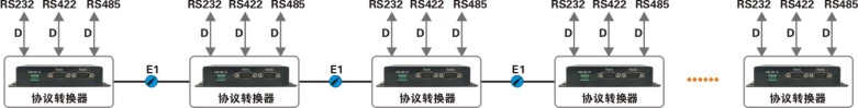 鏈型協(xié)議轉(zhuǎn)換器分主端站和節(jié)點(diǎn)站。若任一個(gè)節(jié)點(diǎn)站設(shè)備掉電或故障,不影響主干鏈路的傳輸。雙E1傳輸接口可實(shí)現(xiàn)1+1保護(hù)傳輸,適用于要求較高的場(chǎng)合。