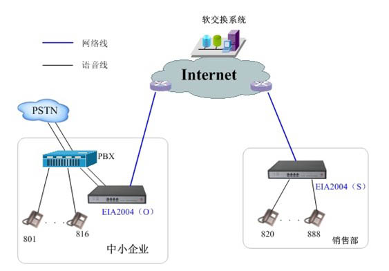 產(chǎn)品概述 終端EIA2004接入設(shè)備、提供4個S口接普通話機(jī), 可享受VoIP的低廉的資費(fèi), 優(yōu)質(zhì)語音,同時提供1個WAN口,1個LAN口,允許企業(yè)、辦公室或家庭中多臺PC共享1條ADSL線路、一個Internet ISP賬戶上網(wǎng), 直接連接1臺計(jì)算機(jī)共享上網(wǎng)。 EIA2004提供多方面的管理功能, 可對DHCP服務(wù)器、DMZ主機(jī)、靜態(tài)路由表、DNS、端口映射等進(jìn)行管理, 同時提供全中文Web配置界面, 用戶界面友好, 配置簡單易用, 支持軟件升級, 是一款能讓您同時體驗(yàn)語音和有線上網(wǎng)沖浪的首選產(chǎn)品。 產(chǎn)品特點(diǎn) ? 支持T.38協(xié)議傳真,支持傳真保密 ? 支持G.711,G.723.1,G.729A語音編碼 ? 語音質(zhì)量優(yōu)異,可以與PSTN媲美 ? QoS語音優(yōu)先保證 ? 終端計(jì)費(fèi)方式靈活 ? 靈活的FXS/FXO接口 ? FXS/FXO端口具有防雷功能 ? 安裝簡單(用普通話機(jī)配置),維護(hù)管理方便支持Web,Telnet,TFTP維護(hù)管理 ? 支持PPP/PPPOE,DHCP Client ? 支持靜態(tài)、動態(tài)和虛擬IP ? 支持公網(wǎng)、私網(wǎng) ? 帶路由功能,支持級聯(lián),帶小局域網(wǎng)交換機(jī)功能 ? 支持遠(yuǎn)程升級,遠(yuǎn)程維護(hù) ? 真正穿透NAT功能,適應(yīng)各種網(wǎng)絡(luò)環(huán)境 ? 支持眾方多點(diǎn)FreeLink技術(shù),實(shí)現(xiàn)高可靠性的多MGC分布式的應(yīng)用 ? 支持靜音抑制、檢測, 回聲抑制、舒適噪音產(chǎn)生, 丟包補(bǔ)償、增益控制 ? 支持DTMF收發(fā)號 產(chǎn)品規(guī)格 尺寸(長×寬×高,單位:mm) | 195×135 ×35 | 重量(單位:kg) | 0.8 | 工作溫度(單位:℃) | 0~40 | 存儲溫度(單位:℃) | -20~70 | 工作濕度 | 10%~90% | 功率(單位:W) | 10 | 外置電源適配器 | 支持 | 電源輸入 | 220VAC/50Hz/0.5A | 外置電源輸出 | 12VDC/1.0A | 產(chǎn)品規(guī)格 | 4S | 傳真支持 | 支持 | FXS反極信號發(fā)送 | 支持 | 電話接口雷擊保護(hù) | 10/700, 4000V | 網(wǎng)絡(luò)接口 | 10/100BASE-TX | WAN口數(shù)目 | 1 | LAN口數(shù)目 | 1 |